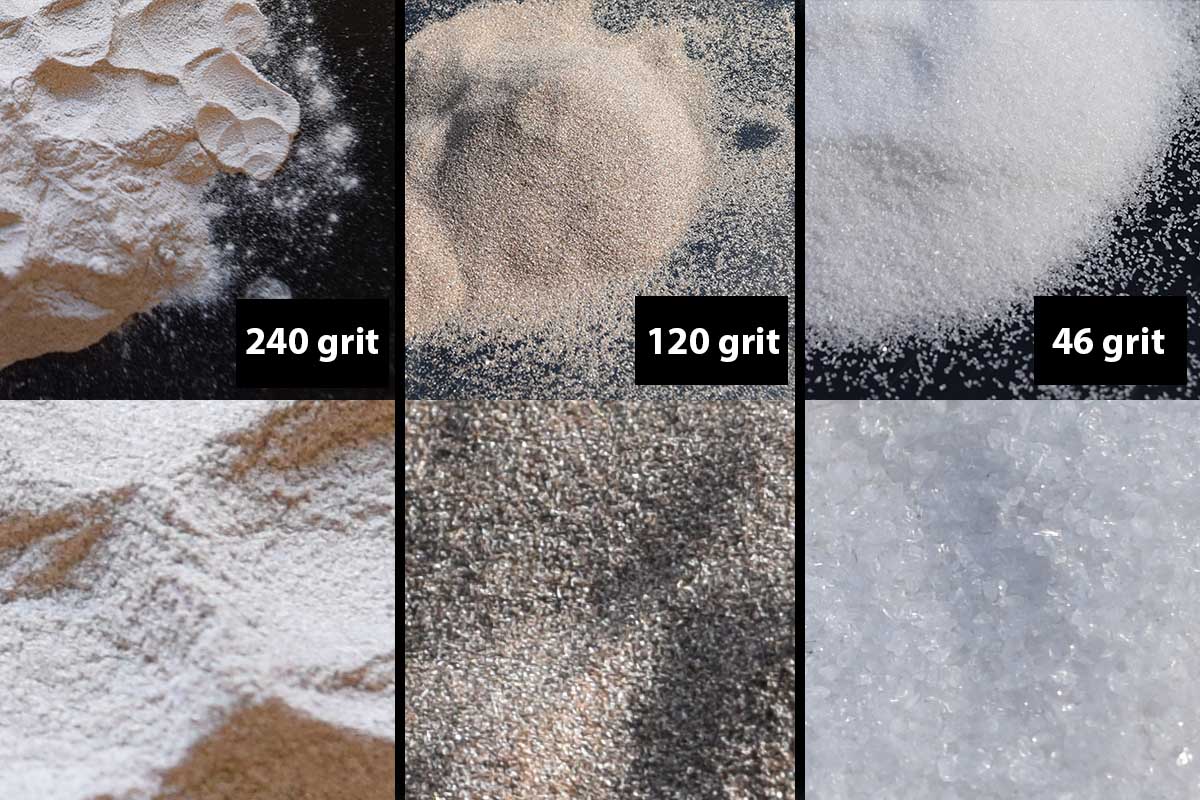 When looking at various sizes you will find terms such as grit/mesh, sieve size, microns etc etc. There are various standards such as those used in the US such as Tyler mesh and US sieve or European grading such as FEPA. The following table will help you to convert between the various grades and measurements that you may come across when choosing a suitable blast media.