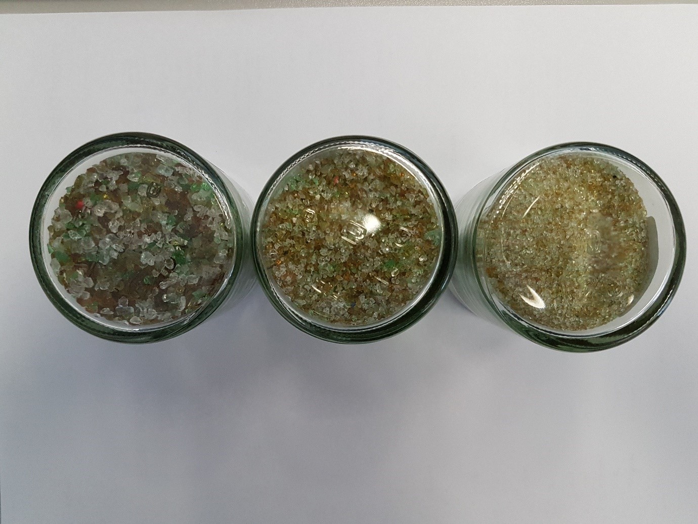 Crushed glass allows a cheap way of removing coatings and profiling the surface of a part. The angular nature means it is more aggressive and allows a fast processing.
