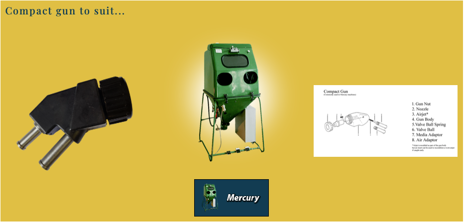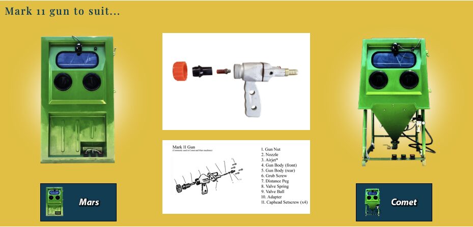 COMET : MK11 gun with a Ø4.76mm or Ø6.75mm air-jet and a Ø10mm (3/8”) or Ø12.7mm process nozzle