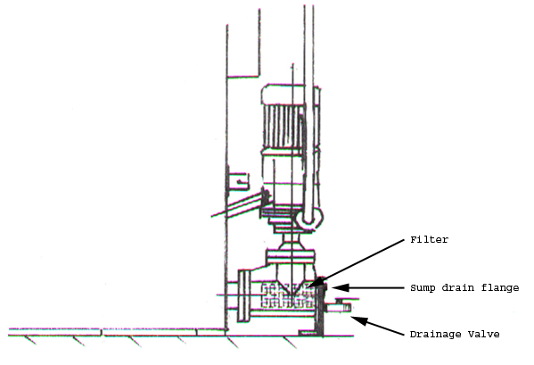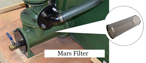 Smaller machines have a fixed filter in the sump while larger machines have a cylindrical removable filter (pictured) behind the drain valve at the base of the pump